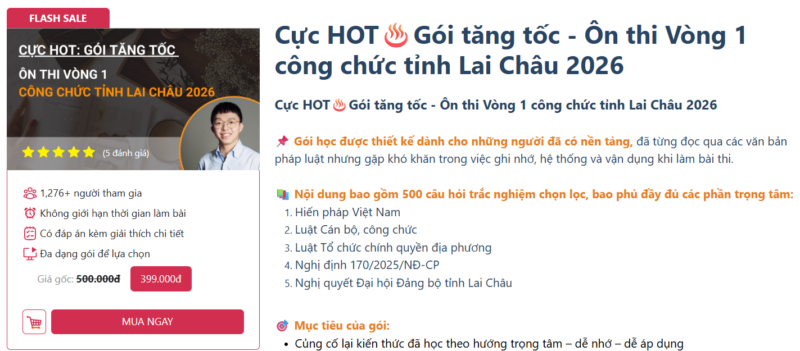ĐĂNG KÝ MUA NGAY: Gói tăng tốc ôn thi công chức Lai Châu 2026